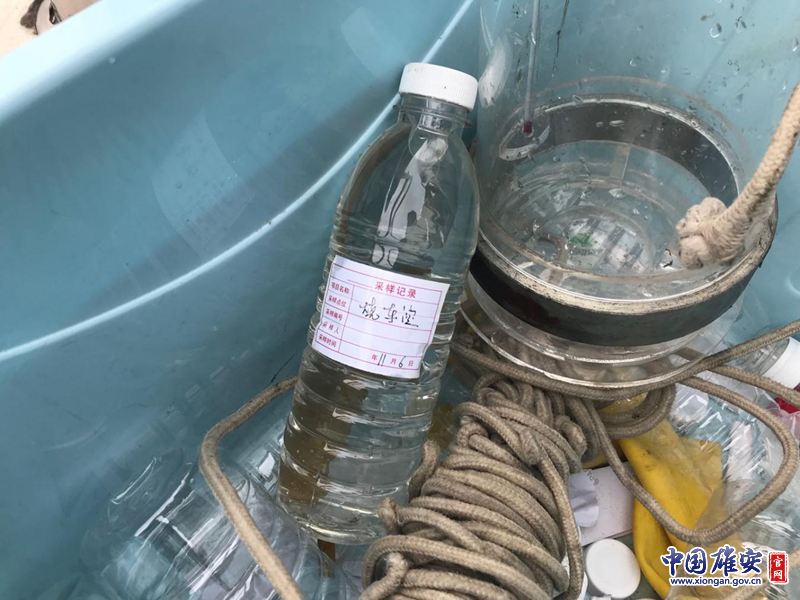 雄安新区生态环境局工作人员在白洋淀所取的水样。中国雄安官网记者封俊龙 摄